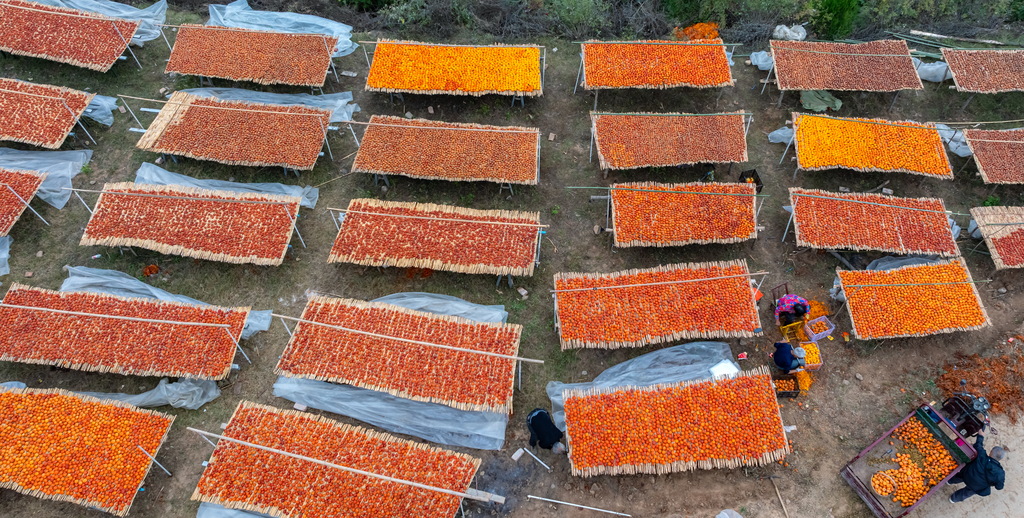 တည်သီးများ မှည့်လာချိန်၌ Henanပြည်နယ်Luoyangမြို့ရှိ ရွာသားများသည် တည်သီး များကို အခြောက်ခံရန် အလုပ်များနေ