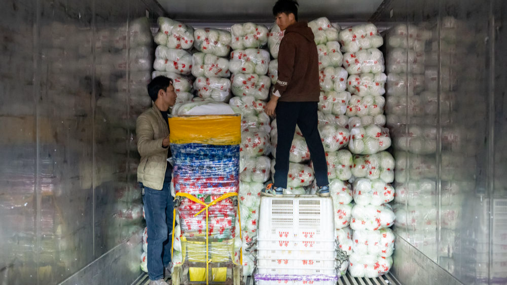 ယူနန်ပြည်နယ် ထုန်းဟိုင်ခရိုင်၌ တရုတ်-လာအို မီးရထားလမ်းသည် ဟင်းသီးဟင်းရွက်များ တင်ပို့ရောင်းချမှုကို တွန်းအားပေးနေ