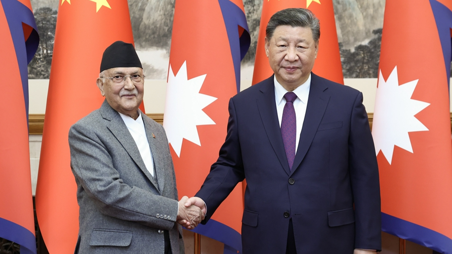 ရှီကျင့်ဖိန်သည် နီပေါဝန်ကြီးချုပ် K. P. Sharma Oli နှင့် တွေ့ဆုံ