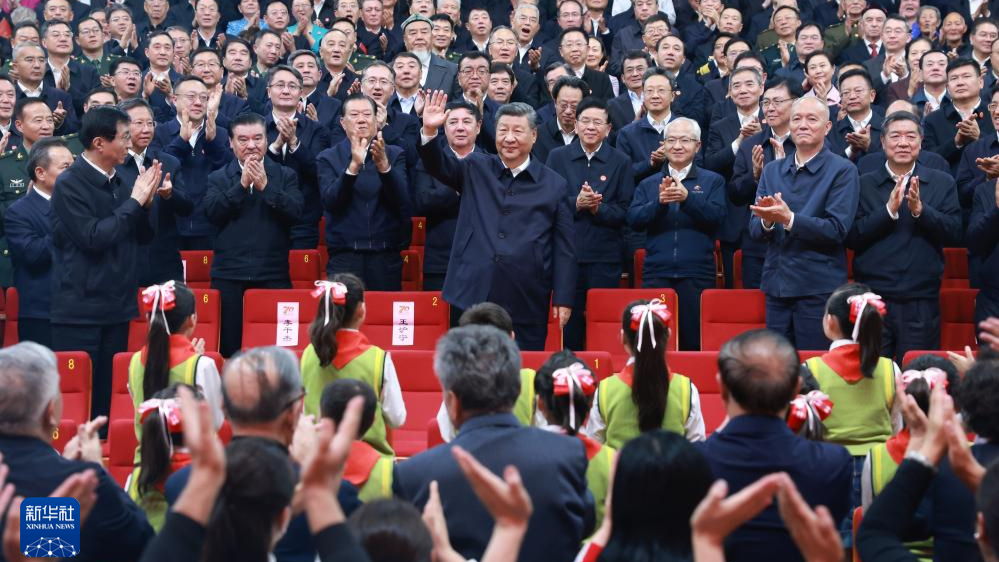 ရှီကျင့်ဖိန်သည် ရှင်းကျန်း ဝေဂါ ကိုယ်ပိုင်အုပ်ချုပ်ရေးဒေသ တည်ထောင်သည့် နှစ် ၇၀ ပြည့် ဂုဏ်ပြု အနုပညာ ပဒေသာကပွဲ (လှပသော ရှင်းကျန်း)ကို ကြည့်ရှု