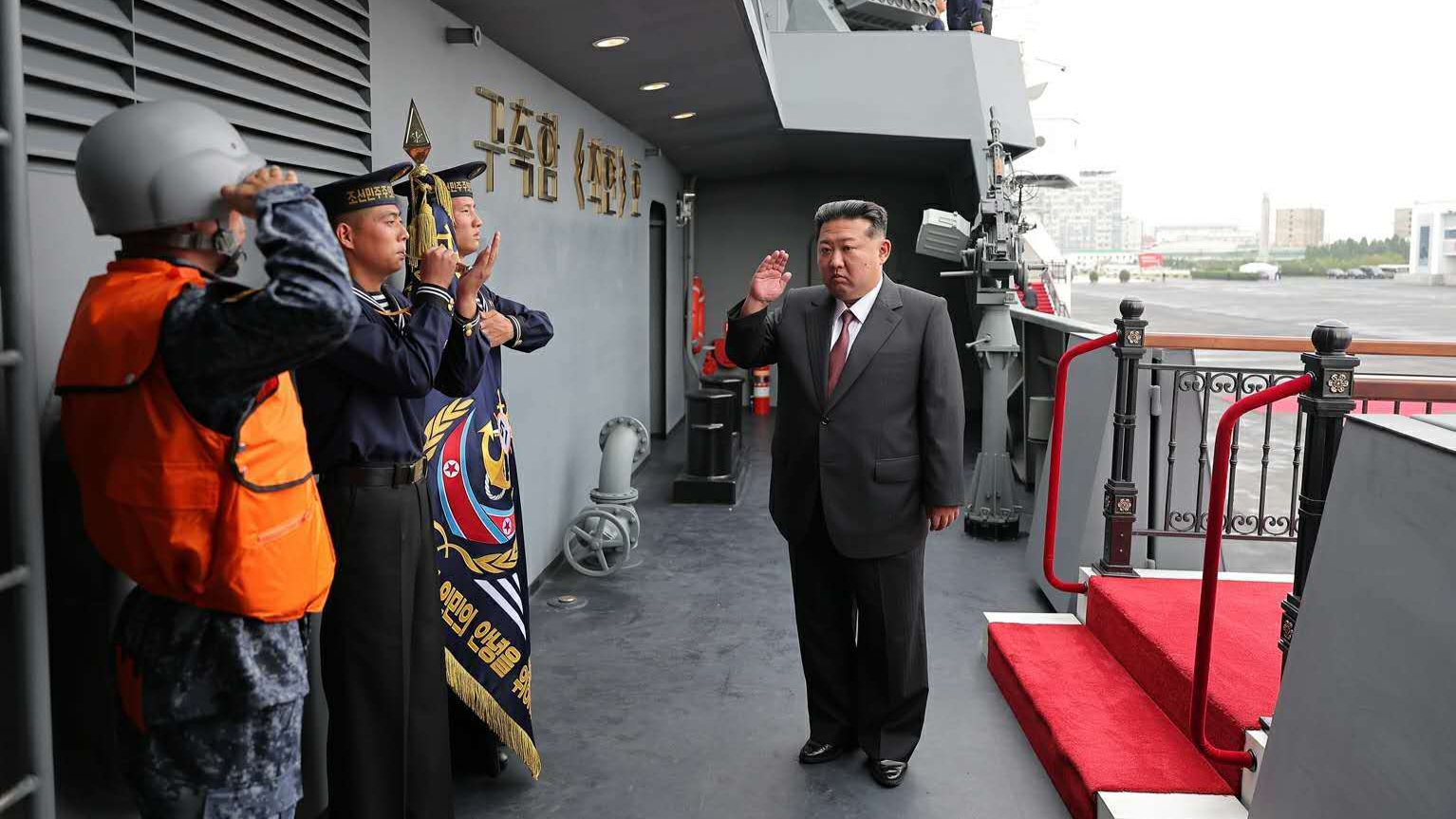 ကင်ဂျုံအန်းသည် လက်နက် ပစ္စည်း ပြပွဲကို ကြည့်ရှုပြီး ဖျက်သင်္ဘော Choe Hyon ပေါ်သို့ တက်ရောက်ကြည့်ရှု