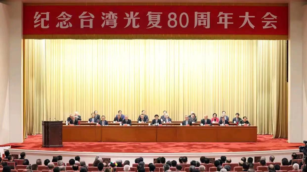 ထိုင်ဝမ် နယ်မြေများ ပြန်သိမ်းနိုင်ခဲ့ခြင်း နှစ် ၈၀ ပြည့် အထိမ်းအမှတ် အစည်းအဝေးကို ကျင်းပ၊ ဝမ်ဟုနင်သည် အစည်းအဝေးတွင် မိန့်ခွန်း ပြောကြား