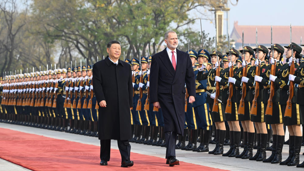 တရုတ်နိုင်ငံသို့ လည်ပတ်နေသည့် စပိန်ဘုရင် Felipe VI အား ကြိုဆိုသည့် အခမ်းအနားကို ရှီကျင့်ဖိန် ကျင်းပ