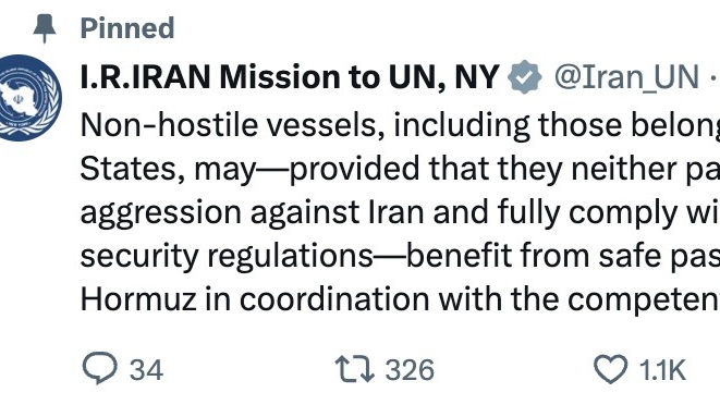 အီရန်နှင့် စစ်မဖြစ်ပွားသောနိုင်ငံများမှ သင်္ဘောများအတွက် ဟော်မုဇ်ရေလက်ကြားကို ဘေးကင်းစွာ ဖြတ်သန်း သွားလာခွင့်ကို အီရန်က ထပ်လောင်းအတည်ပြု