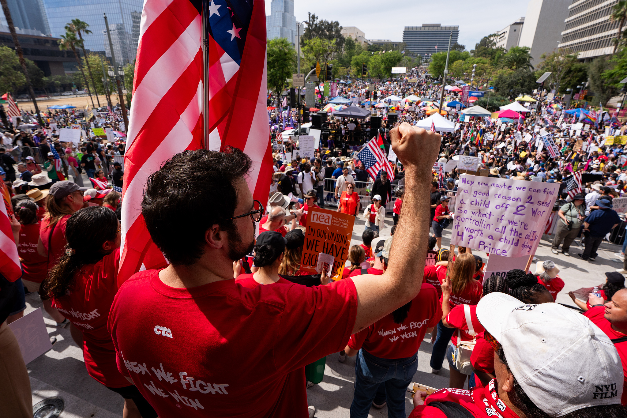 အမေရိကန်နိုင်ငံ လော့စ်အိန်ဂျလိစ်တွင် အတိုင်းအတာကြီးမားသော ဆန္ဒပြမှုများဖြစ်ပွား၊ ဆန္ဒပြသူ ၇၅ ဦးကို ရဲတပ်ဖွဲ့ ဖမ်းဆီး